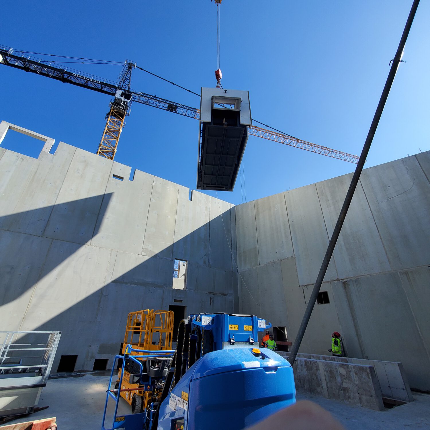 Das erste Obergeschoss wurde noch 2024 betoniert, das zweite Obergeschoss wurde ebenfalls vor kurzem fertig gestellt, ebenso der gesamte Unterbau für die Hackschnitzelförderanlagen (Schubboden, Querförderer, Zwischenboden für eine mögliche Hackschnitzelvortrocknung). Zuletzt wurden die restlichen, bereits vorgefertigten Betonwände aufgestellt.